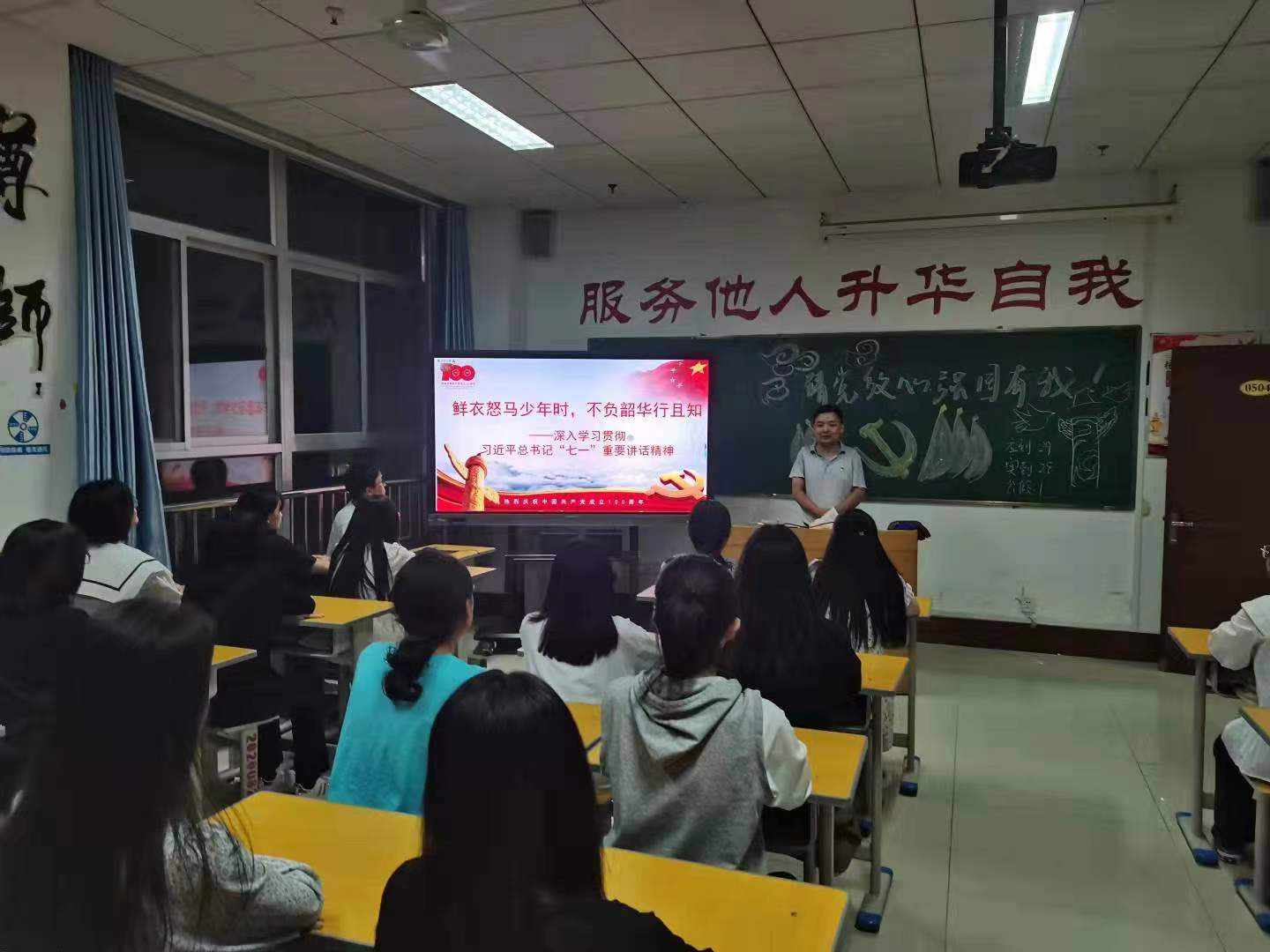 近日,在学院图书信息楼504教室,马克思主义学院21级新生团学负责老师以“鲜衣怒马少年时,不负韶华行且知”为题,以习近平总书记“七一”重要讲话精神为理论依据,通过案例、图片、视频等资料,运用列举、对比等手法,围绕百年党史的主题是什么、百年奋斗的成就有什么、伟大建党精神做什么、百年之问和百年之思如何做等四个问题,引导学生培根铸魂启智润心,号召青年学生要增强做中国人的志气、骨气、底气,不负时代,不负韶华,不负党和人民的殷切期盼。